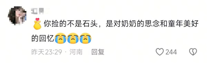 捡起石头的那一刻,脑海里的画面简直是同步出现的。“等于奶奶围着灶台作念饭的阵势。”他说,“小时期下学回家,基本齐是她作念饭给我吃。”他致使能明晰地回忆起,奶奶一边掀锅盖、一边把石头搬动位置的行为。“天然东说念主不在了,但那一幕确凿很澄莹,有点像隔着时分又见了一面。”
