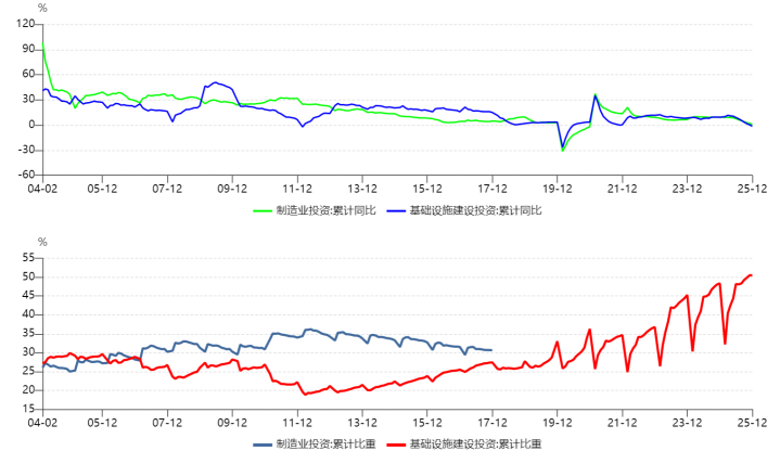 图:制造业与基础要道投资累计同比走势