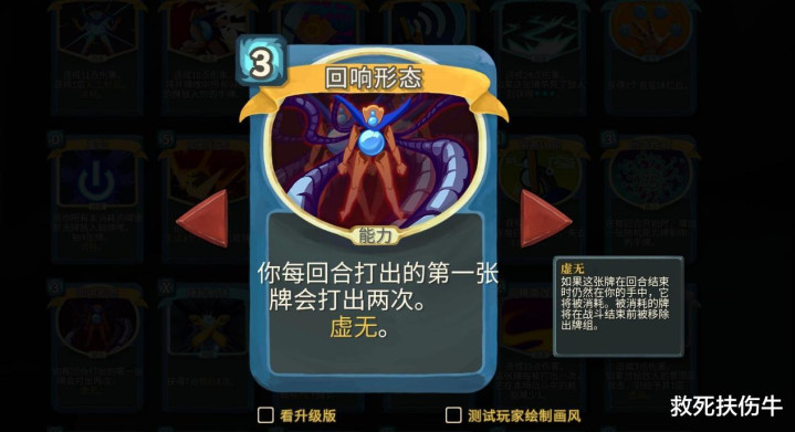 另一张卡叫“回响样貌”,成果是每回合第一张牌触发两次。对应的是评述复读,就像这样。