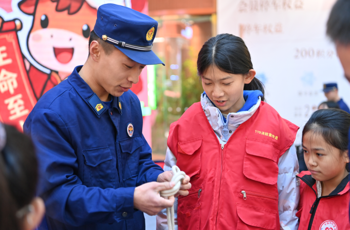 本次行径以“文艺扮演+实景体验+全民互动”的多元体式,通过消防志愿者歌舞扮演、有奖问答集钤记、试穿接触服、学打绳结等互动门径,让现场群众“千里浸式”掌捏消防知识。