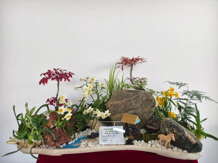创意组协作品构想小巧,植株与配饰情性横生,敷陈着灵动鲜嫩的新春故事。