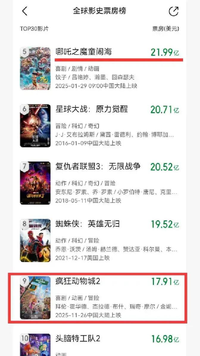 说的是《恣意动物城2》。这部迪士尼动画在内地也曾跑了两个多月,票房靠拢四十五亿东说念主民币,群众票房冲到接近十八亿好意思元,也曾压过了《头脑特工队2》。离群众动画第一的《哪吒2》还有一截,能够四亿好意思元。四亿好意思元,别被“亿”这个字骗了,那可不是四亿东说念主民币。北好意思果真见顶,欧洲也提不奋勉,能链接冲刺的,基本全压在中国市集。