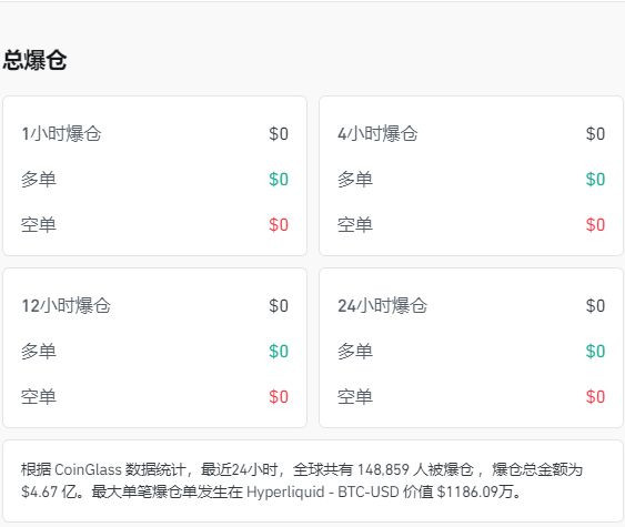 字据CoinGlass数据统计,最近24小时,大师共有148859东谈主被爆仓,爆仓总金额为4.67亿好意思元(约合东谈主民币32亿元)。