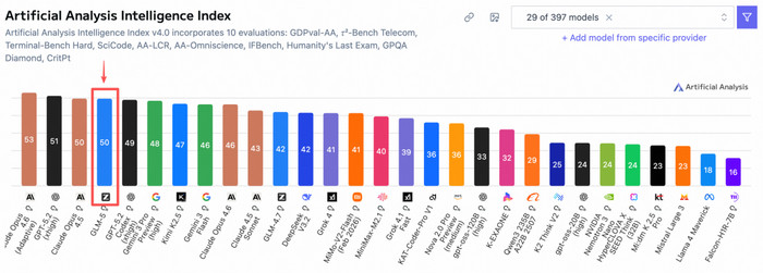 在公共泰斗的ArtificialAnalysis榜单中,GLM-5位居公共第四、开源第一。