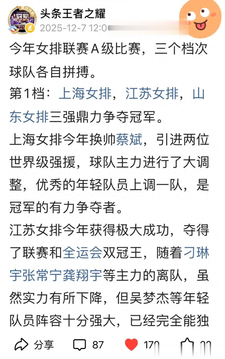 第一:上海女排,江苏女排,山东女排是冠军争夺者。