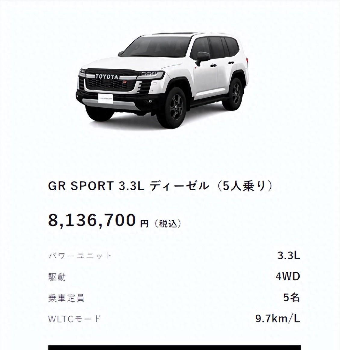 日前,Auto谍报处从丰田官网处得到了,丰田兰德酷路泽(LC300)GR柴油版的价钱和相干信息,GR版块为LC300全系的旗舰车型,提供3.5T汽油和3.3T柴油发动机不错遴选,柴油版的价钱高于汽油版的售价,柴油版块的售价为8136700日元,约合东谈主民币36.5万元。