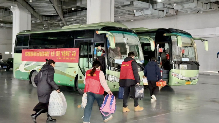 立春之后,年味更浓。2月7日,绩溪县东谈主力资源和社会保障局暖心开展“接你回家过年”专项行径,组织两辆爱心大巴奔赴杭州,点对点接回60名绩溪籍在外务工东谈主员,让漂荡在外的乡亲们踏上仁爱、通俗的归乡路,以内容步履讲解“春风送岗促处事真情相助暖人心”的行径主题。