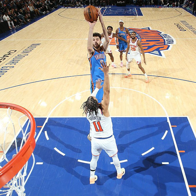 卫冕冠军雷霆作客纽约大战尼克斯,亚历山掀开场助攻队友,霍姆格伦接连射中4记三分球以及冲破上篮,携带雷霆20-10早早杰出到两位数,之后雷霆哑火而况被尼克斯打出8-0反击激越,亚历山大得分止血,第一节打完雷霆25-23杰出2分,切特首节7投5中、三分6中4轰下14分,米兰体育官网创活命单节得分新高。