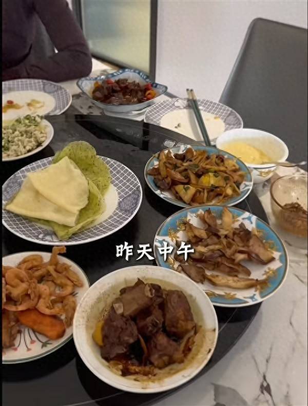 糊口中两东谈主吃饭很节俭,一桌子丰盛的菜其实齐是昨日剩菜,是餐厅没吃完打包带回家的。