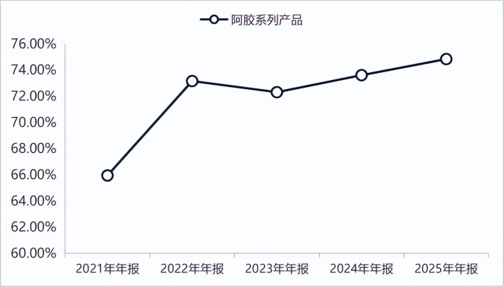 一般情况下,给经销商加大销售返利持续是竞争压力加大所致。但是东阿阿胶的阿胶系列家具在个国内,尤其是华东商场实在是阿胶的代名词,有完全的品牌上风。也即是说加大销售返利并不是竞争压力增大所致。而况字据阿胶系列的毛利率情况来看,开云体育官方网站近些年毛利率呈现飞腾趋势。2025年阿胶系列毛利率一度达到了74.84%。毛利率莫得下滑诠释竞争压力并不大。