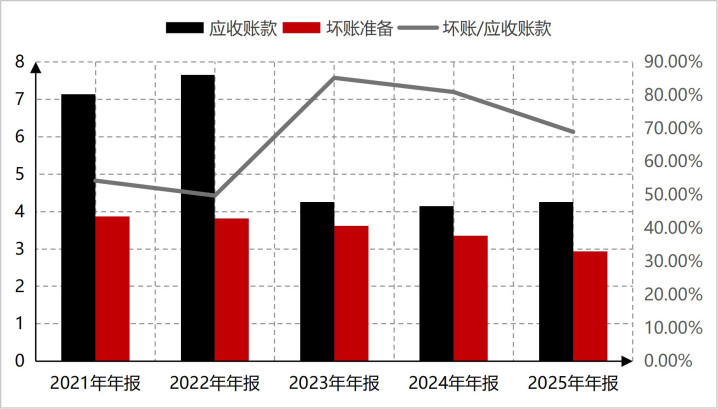 东阿阿胶对单一客户依赖大,且存在计议来回的情况成为了企业扩充宽松销售政策运转事迹增长的前提条目。而主要技术是增多销售返利和增多信用账期。字据东阿阿胶最近五年的其他支吾款中的预提用度(主若是销售返利)来看,东阿阿胶的预提用度增速显明要高于营业收入增速。2025年东阿阿胶营业收入为67亿元,联系于2021年38.49亿元的营业收入增长了1.72倍,而2025年预提用度为8.36亿元,相较于2021年的3.02亿元增长了2.77倍。预提用度增速显明大于营业收入增速,诠释东阿阿胶通过加大销售返利的格局刺激产企业家具的销售。