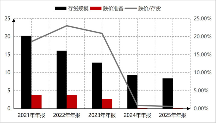 另外,东阿阿胶计提的存货跌价准备领域也很大。回看东阿阿胶以昨年份的年报情况来看,东阿阿胶对存货大领域计提跌价准备,而况存货跌价准备的计提主要辘集在库存商品上头,2021年年报库存商品余额6.84亿元,计提库存商品跌价准备3.43亿元,2022年库存商品余额5.90亿元,计提库存商品跌价准备3.35亿元,2023年库存商品余额5.46亿元,计提库存商品跌价准备2.61亿元,2024年和2025年终于对库存商品跌价准备的计提比列投入了迢遥领域。