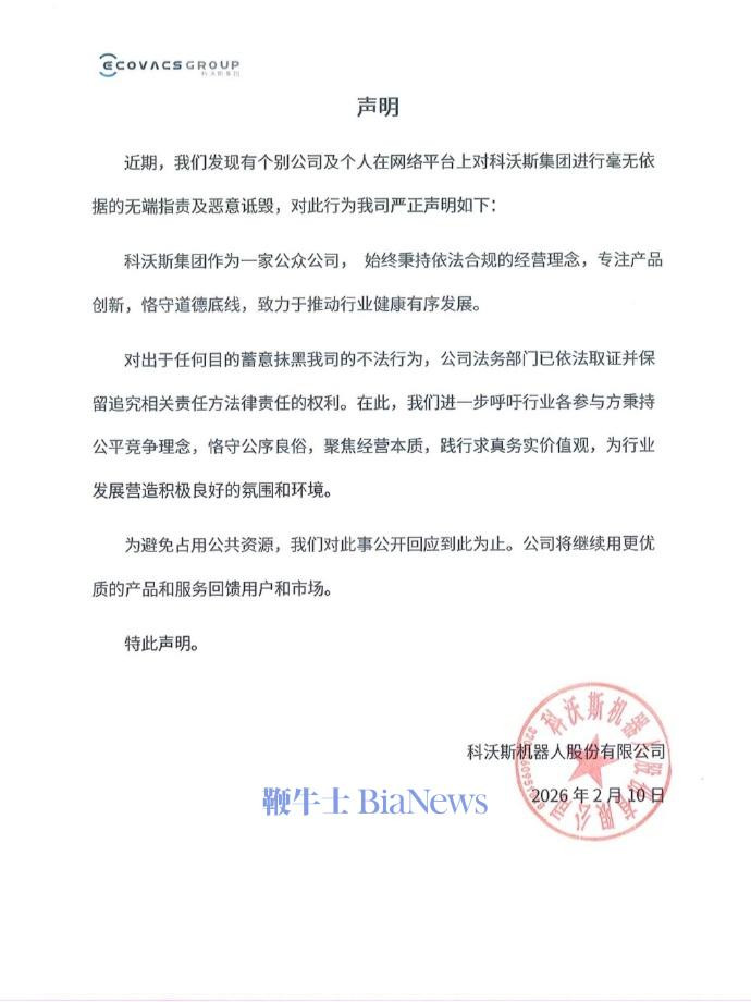 科沃斯集团暗意,当作一家公众公司,恒久秉合手照章合规的规画理念,专注产物革命,信守谈德底线,奋勉于鼓吹行业健康有序发展。