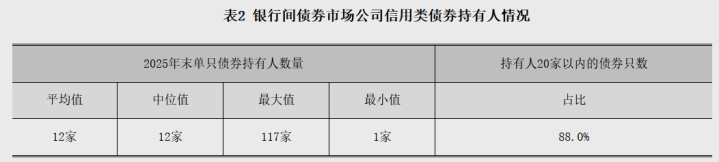 轨则2025年末,银行间债券市集的法东谈主机组成员共3923家,一齐为金融机构。从抓债边界看,公司信用类债券前50名投资者2抓债占比53.4%,主要聚积在国有大型交易银行(自营)、公募基金(资管)、保障类金融机构(资管)等;前200名投资者抓债占比84.5%。