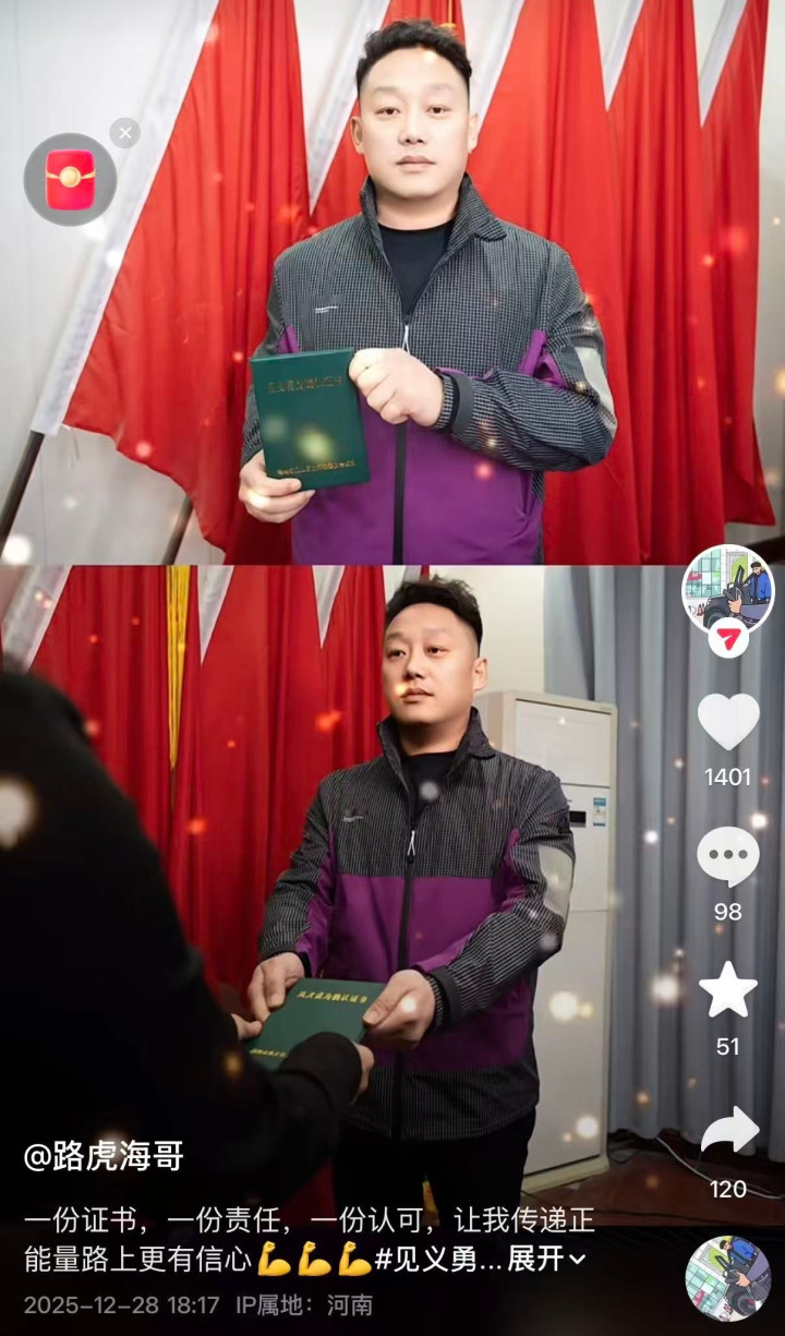 2026年1月16日,贾先生拿到了郑州市颁发的扶弱抑强证据文凭,他坦言,那时的神志很甘愿,“在这件事之前,我其实就依然作念了十多年的公益,但从没因为作念好东说念主功德得到过这样的笃定,虽说作念公益从来不是为超越到招供,但能取得这份盛誉,心里照旧挺幸福的。”