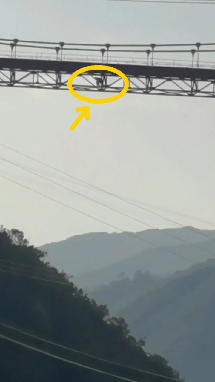 爬上了50多米高的大桥外侧被困