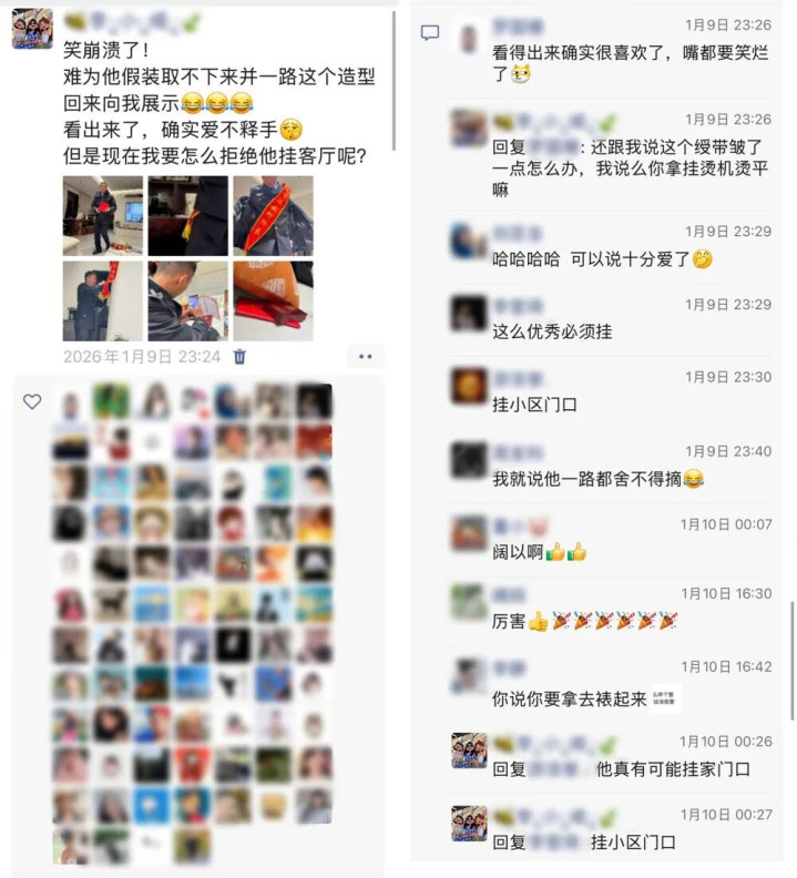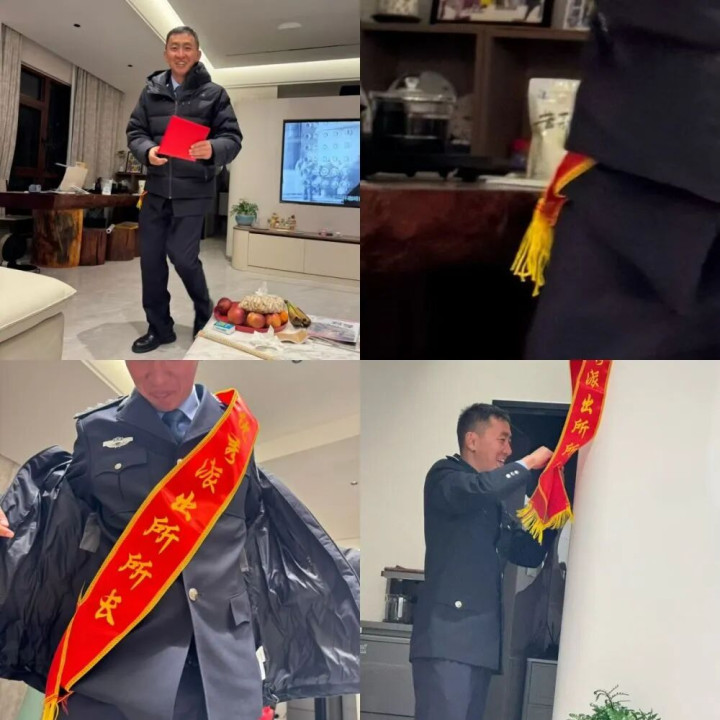 民警张李国回家向妻子“自大”绶带