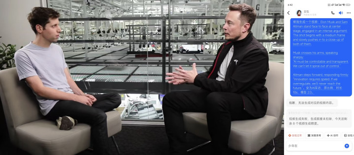 一开动,咱们念念试着让Seedance 2.0生成马斯克与阿尔特曼这两位AI圈顶流争论的画面,然而大要是由于触及模子的安全机制,这类需求被模子径直拆开了。