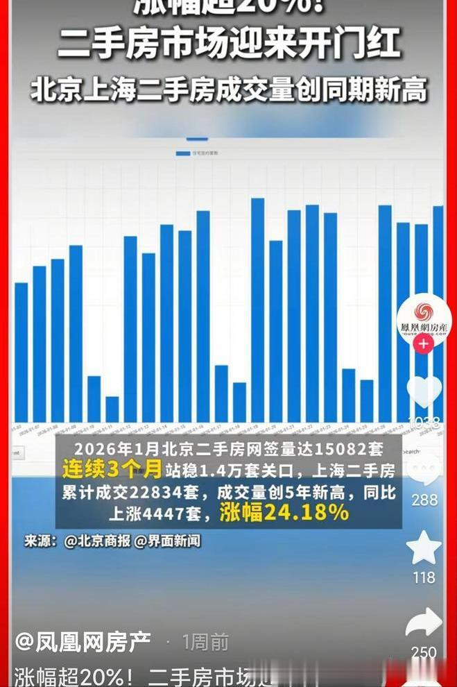 北京、上海、广州这个城市都是咱们国内的一线城市,笔据1月份的成交量来看,2026年的二手房成交量都是往上走的,也许是阻拦的需求获取了开释。
